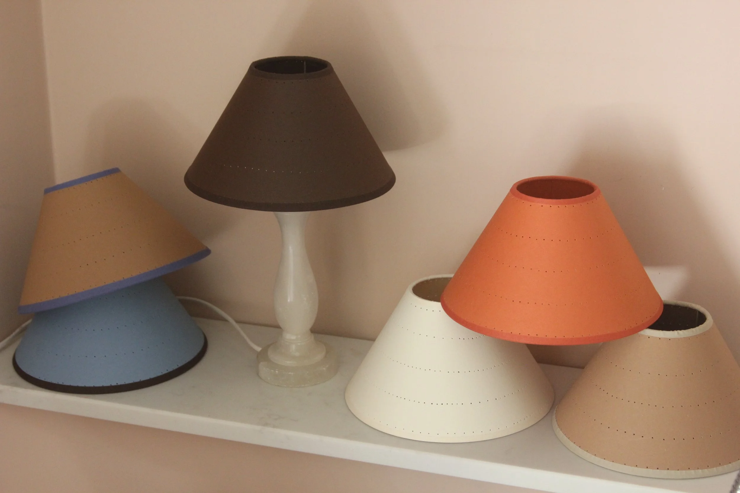 We’re a sister-founded studio fuelled by a love of creating beautiful, atmospheric lighting. We specialise in making table lamps and perforated and painted lampshades, each one decorated by hand. Designed and made in England.