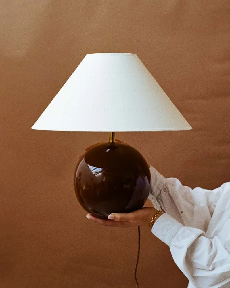Left: The Orb Lamp paired with our Juno Lampshade in Medium